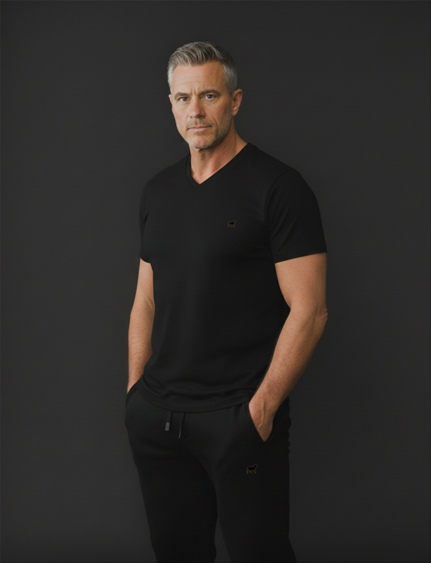 Designed for athletes who want a fitted V neck that complements their physique without shouting for attention. Strong lines. Pure comfort. The blackout aesthetic at its cleanest.