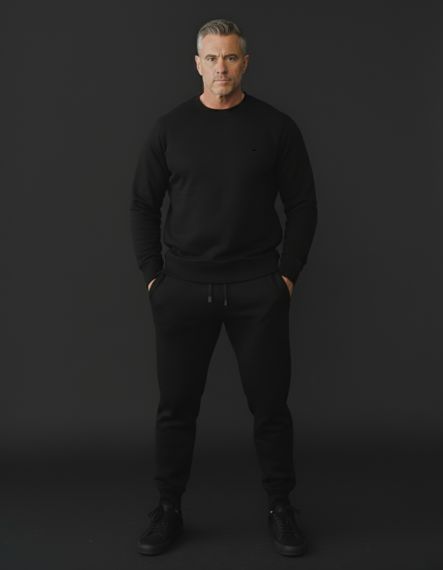 Built from premium heavyweight fleece, they deliver warmth, comfort, and a shaped athletic fit that sits naturally on stronger legs. The tapered lower leg adds structure, the waistband stays secure without digging in, and the tonal embroidery keeps the look sharp and understated.
