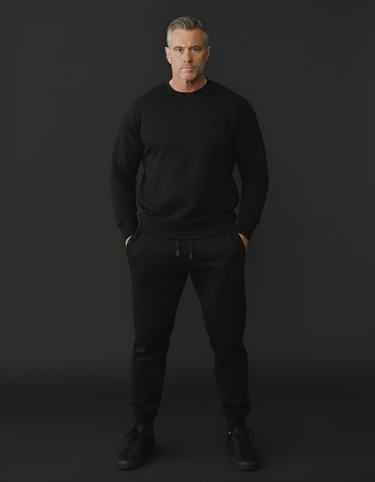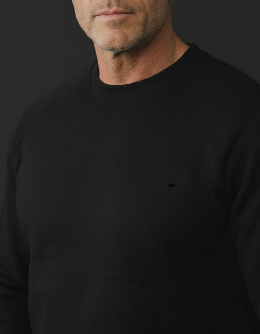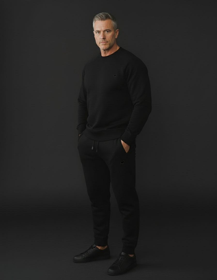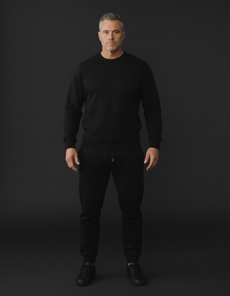 Crafted from premium midweight fleece, it provides comfort without bulk and holds a sharp shape across the chest, shoulders, and arms. The fit stays clean, the fabric stays smooth, and the blackout detailing keeps everything modern and refined.